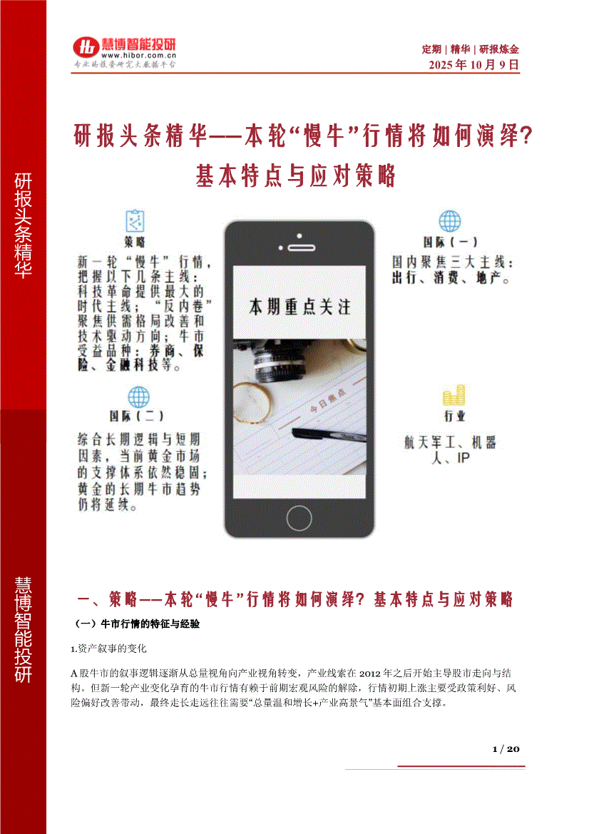 研报:慧博智能投研-慧博研报炼金之研报头条精华:本轮“ 慢牛” 行情将如何演绎?基本特点与应对策略-251009