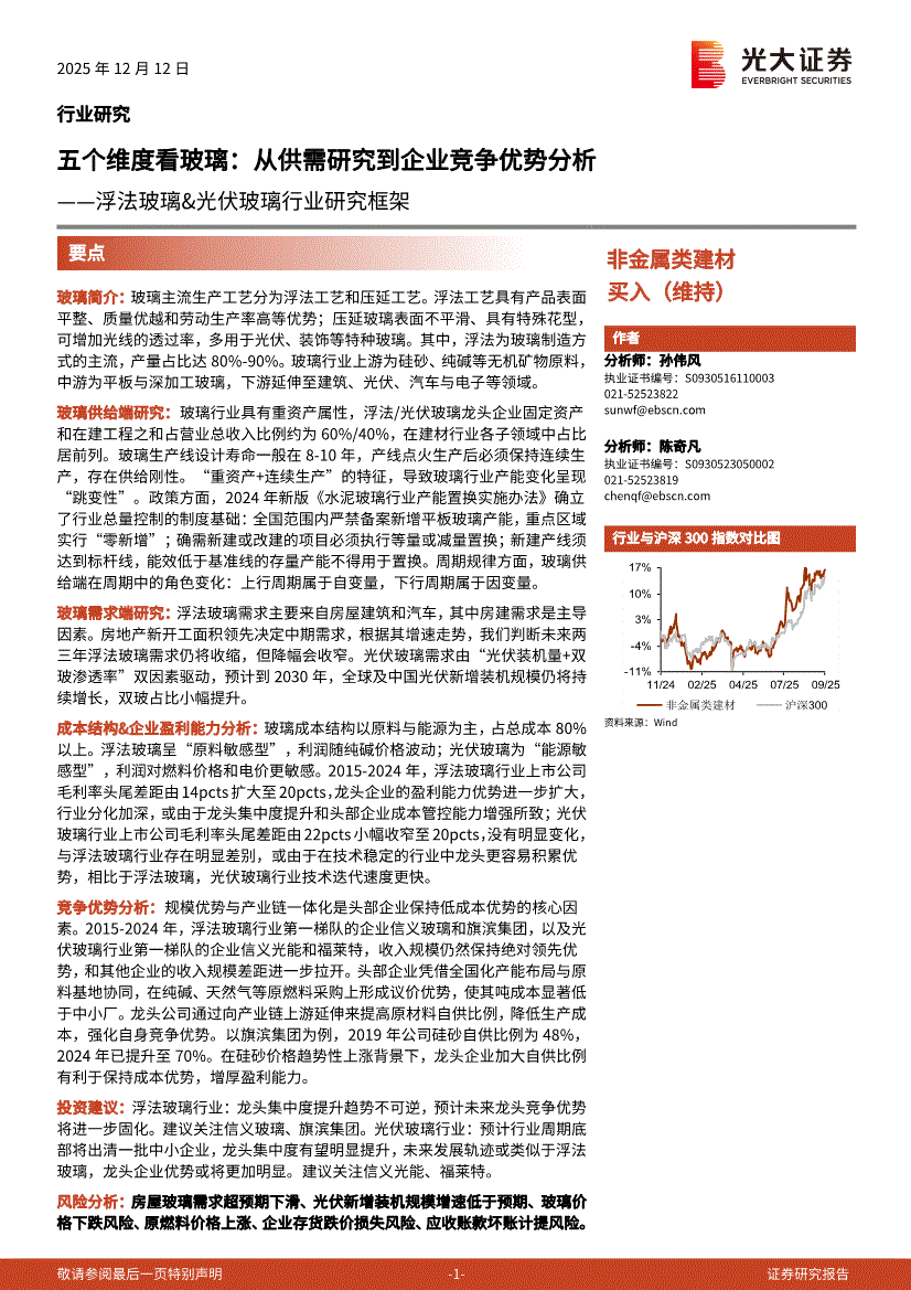浮法玻璃&光伏玻璃行业研报:光大证券-浮法玻璃&光伏玻璃行业研究框架:五个维度看玻璃,从供需研究到企业竞争优势分析-251212