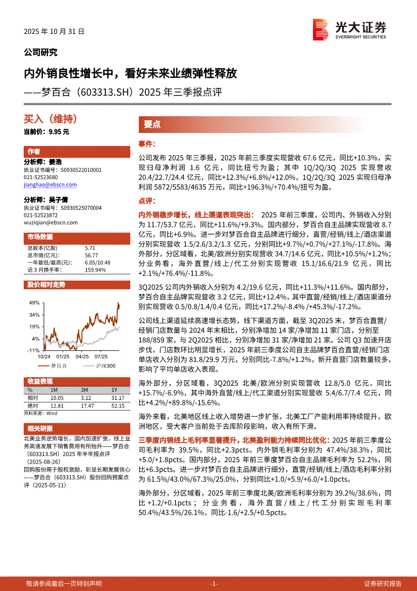 梦百合研报:光大证券-梦百合-603313-2025年三季报点评:内外销良性增长中,看好未来业绩弹性释放-251031