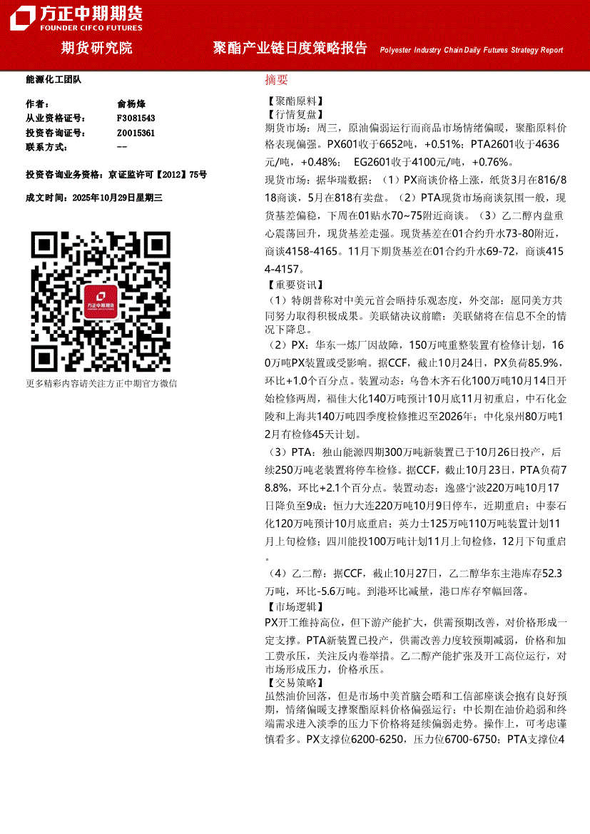 研报:方正中期期货-聚酯产业链日度策略报告-251029