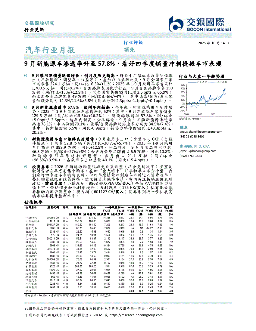 汽车行业研报:交银国际-汽车行业月报:9月新能源车渗透率升至57.8%,看好四季度销量冲刺提振车市表现-251014