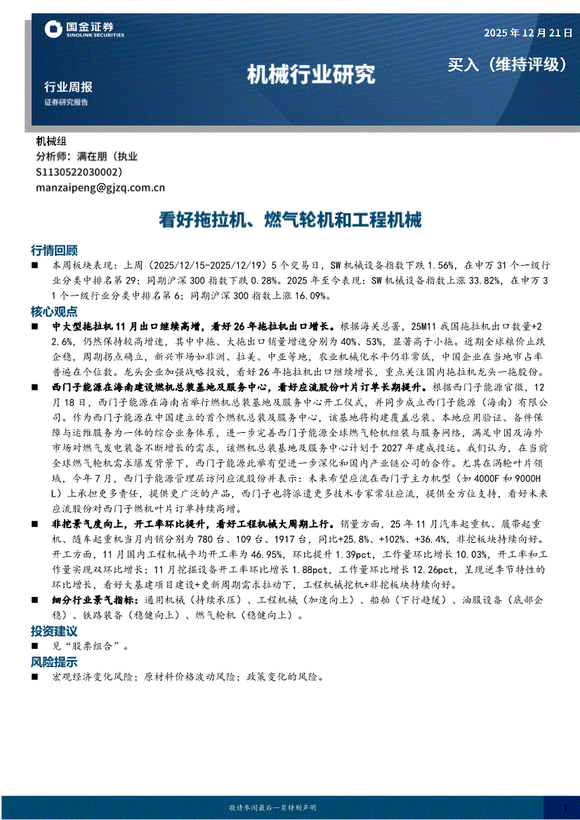 机械行业研报:国金证券-机械行业周报:看好拖拉机、燃气轮机和工程机械-251221