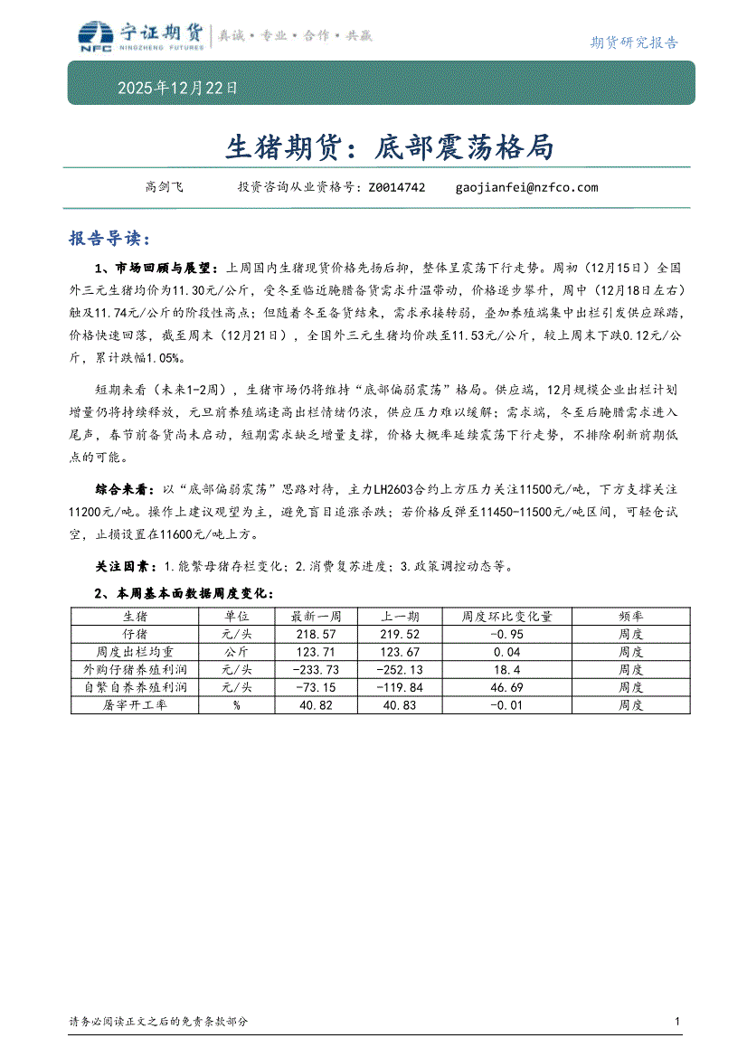 研报:宁证期货-生猪期货:底部震荡格局-251222