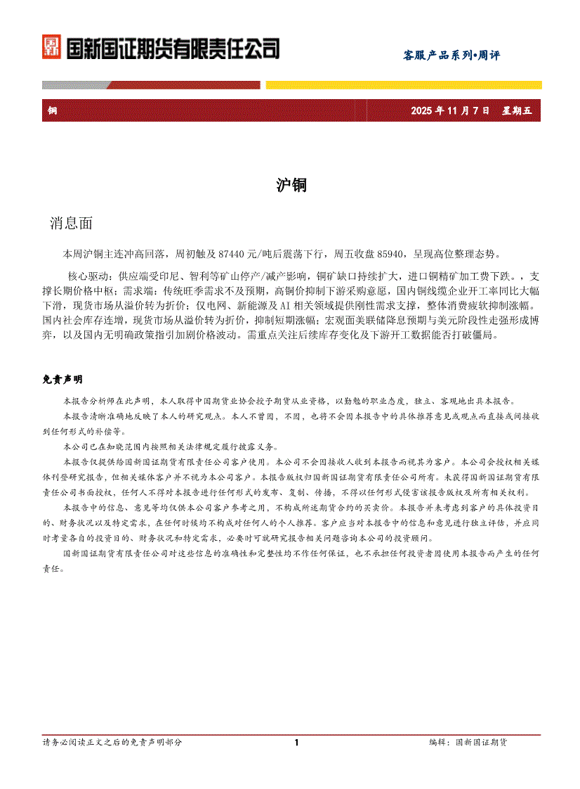 华联期货-铜周报:铜矿供应紧张为铜价提供支撑-251109