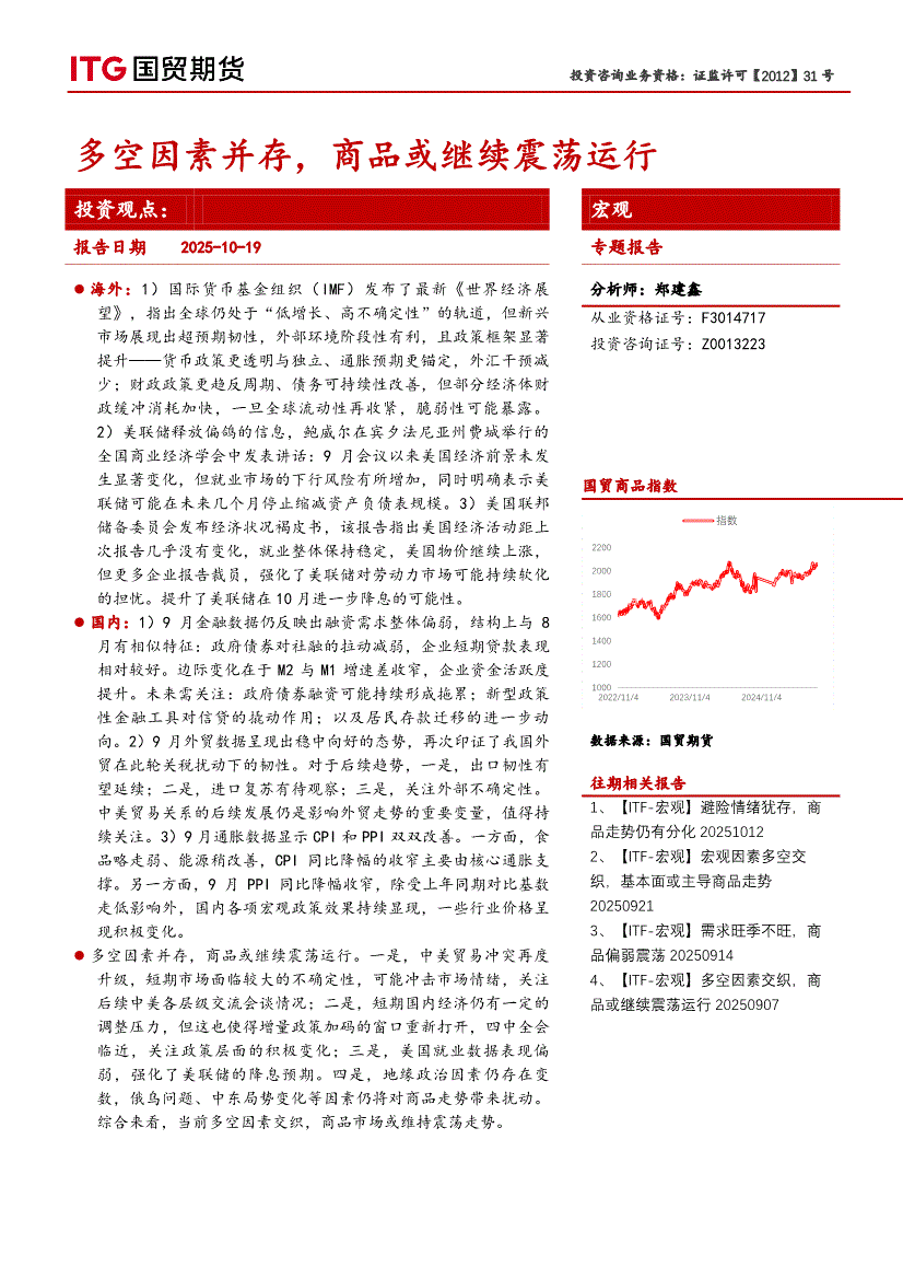 研报:国贸期货-多空因素并存,商品或继续震荡运行-251019