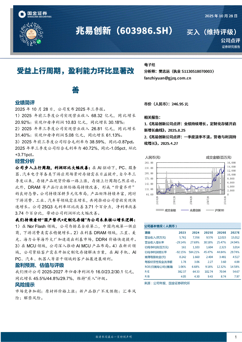 兆易创新研报:国金证券-兆易创新-603986-受益上行周期,盈利能力环比显著改善-251028
