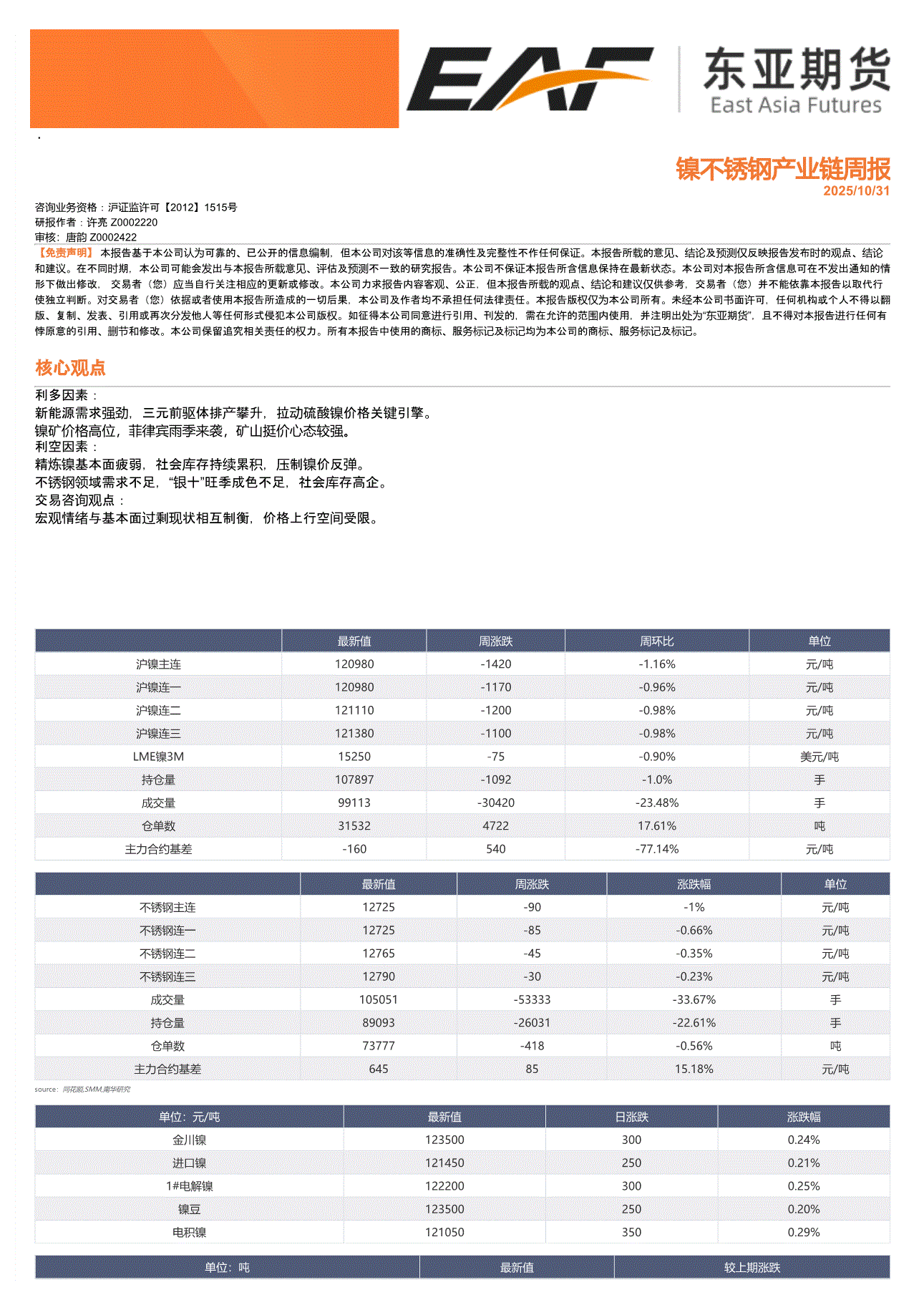 研报:上海东亚期货-镍不锈钢产业链周报-251031