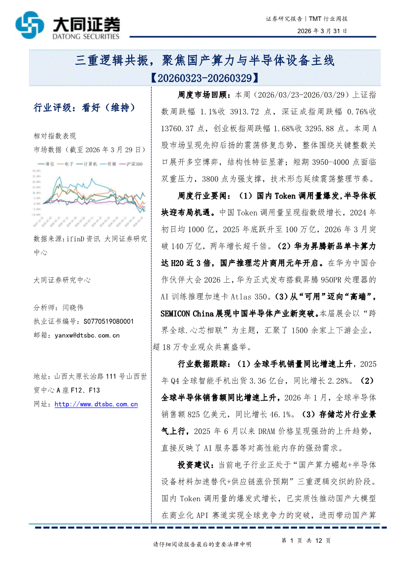 TMT行业研报:大同证券-TMT行业周报:三重逻辑共振,聚焦国产算力与半导体设备主线-260331