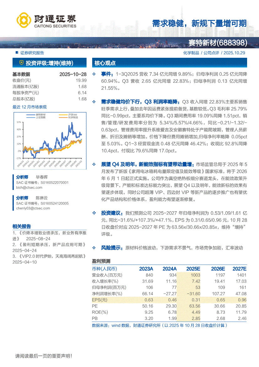 赛特新材研报:财通证券-赛特新材-688398-需求稳健,新规下量增可期-251029