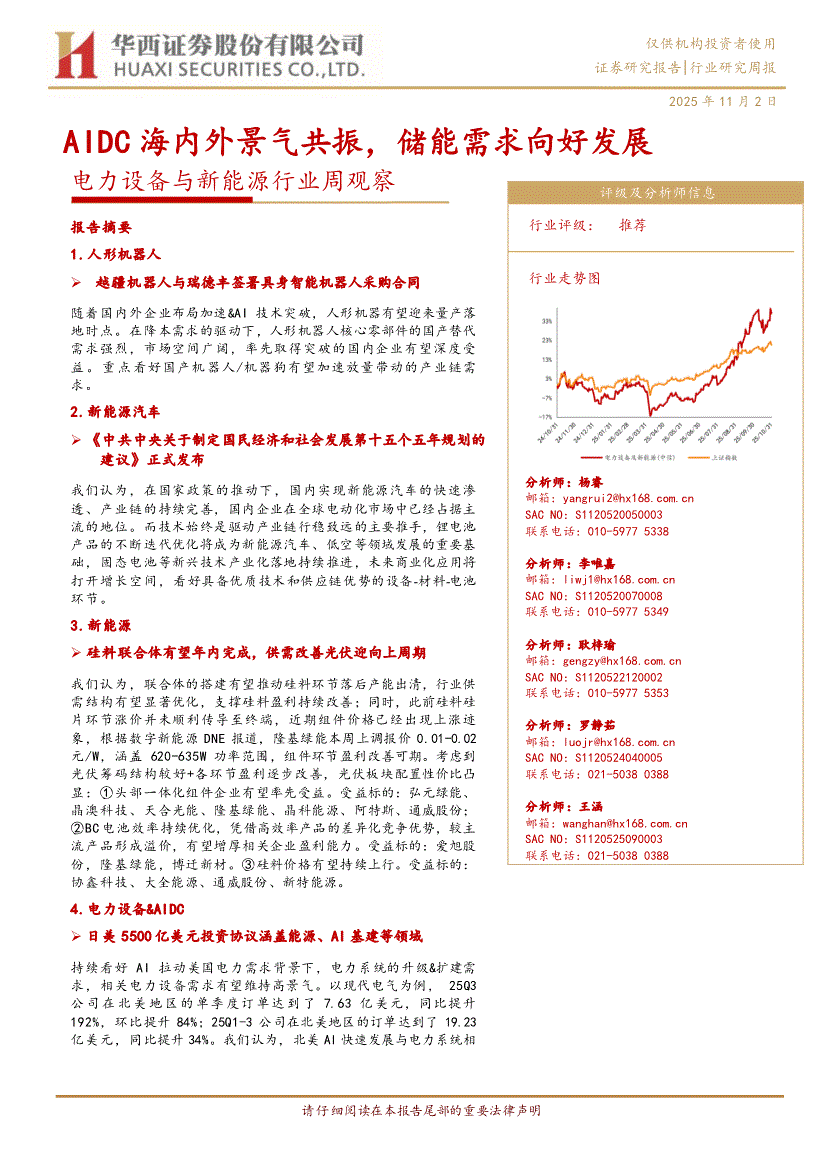 电力设备与新能源行业研报:华西证券-电力设备与新能源行业周观察:AIDC海内外景气共振,储能需求向好发展-251102