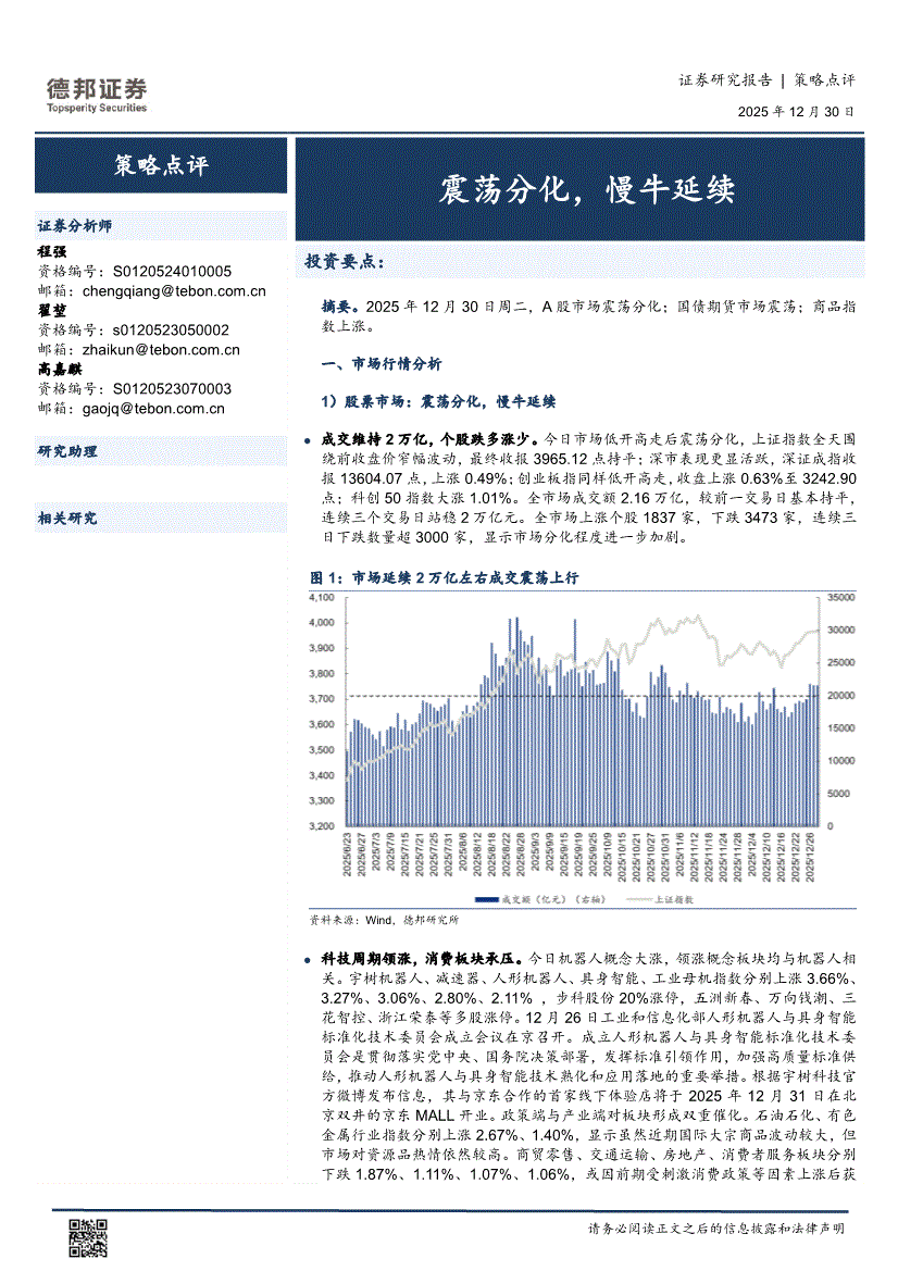 研报:德邦证券-策略点评:震荡分化,慢牛延续-251230