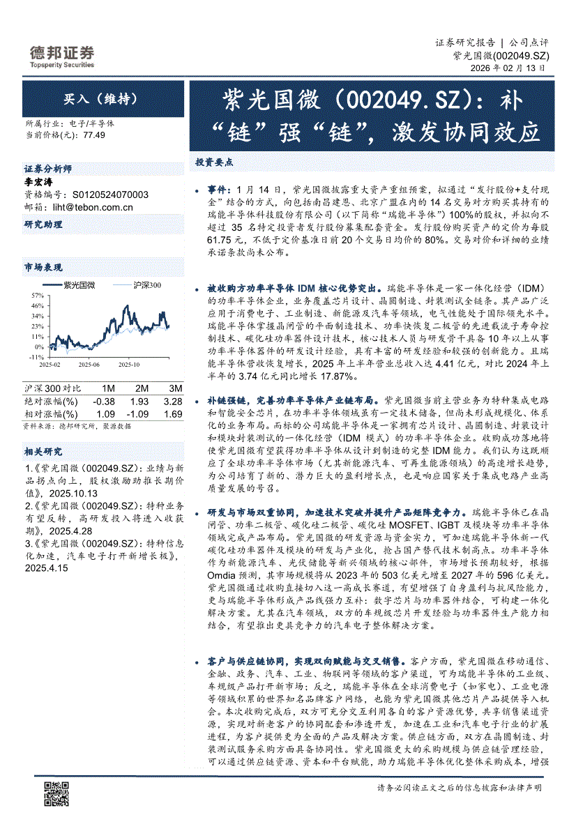 紫光国微研报:德邦证券-紫光国微-002049-补“链”强“链”,激发协同效应-260213