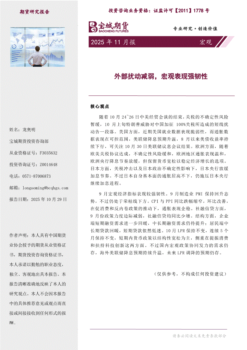 宝城期货-宏观月报:外部扰动减弱,宏观表现强韧性-251030