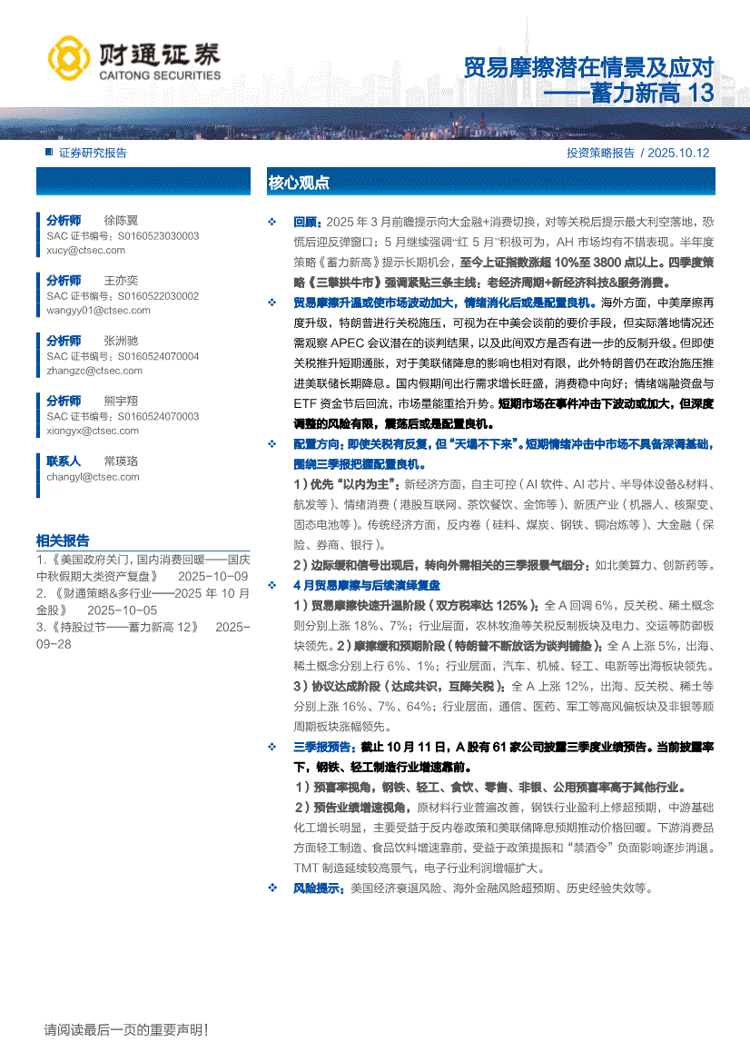 研报:财通证券-蓄力新高13 :贸易摩擦潜在情景及应对-251012