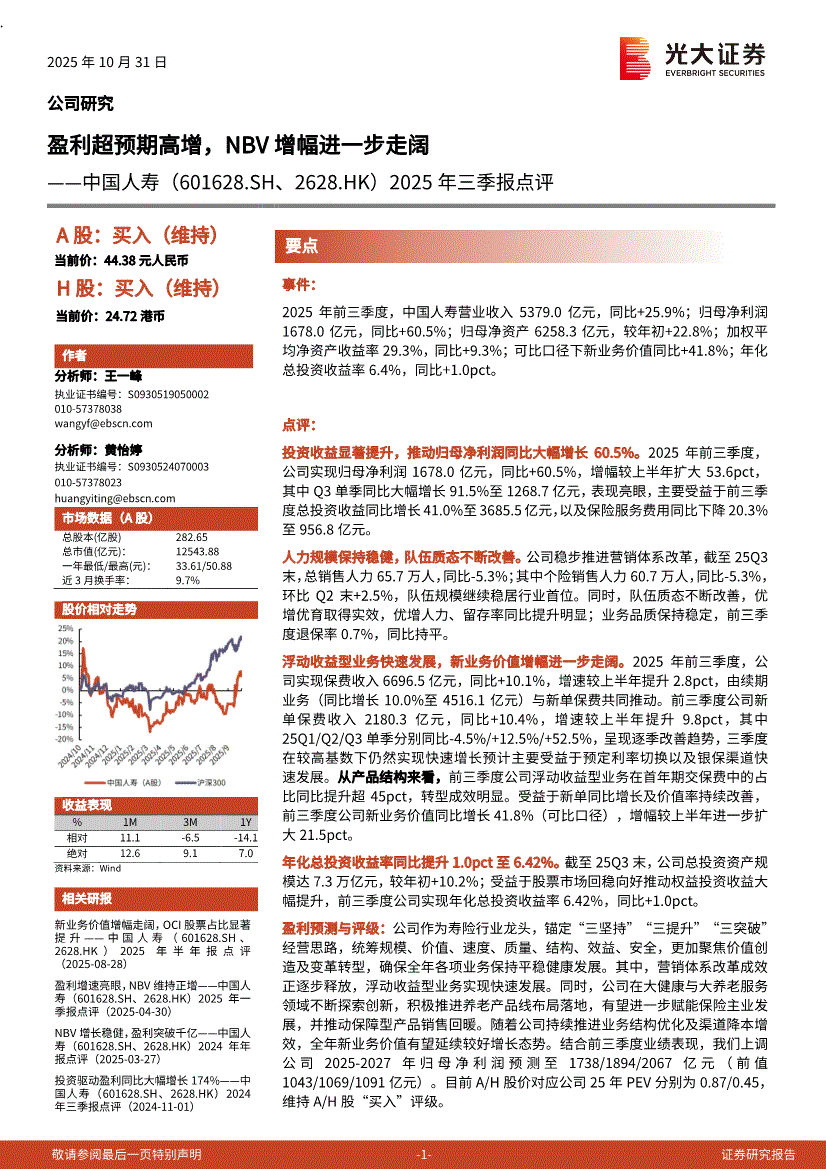 中国人寿研报:光大证券-中国人寿-601628-2025年三季报点评:盈利超预期高增,NBV增幅进一步走阔-251031