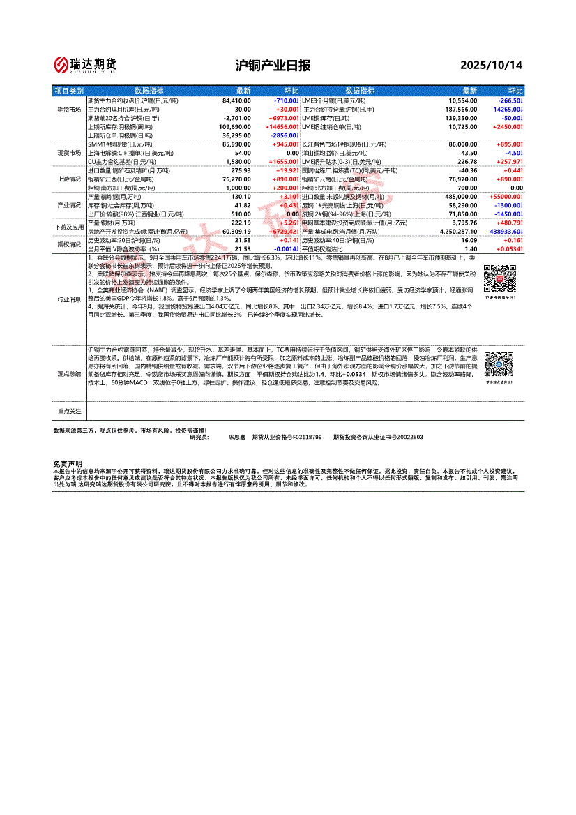 研报:瑞达期货-沪铜产业日报-251014