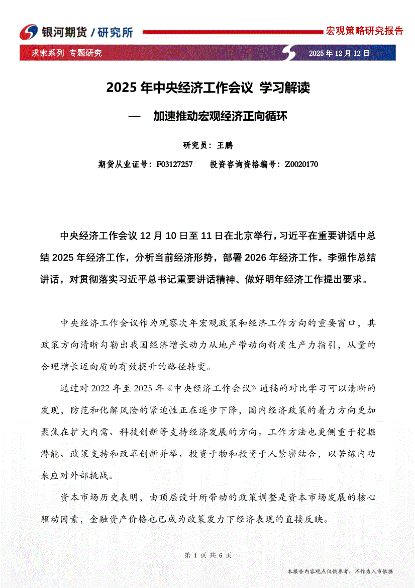 研报:银河期货-2025年中央经济工作会议,学习解读—加速推动宏观经济正向循环-251212