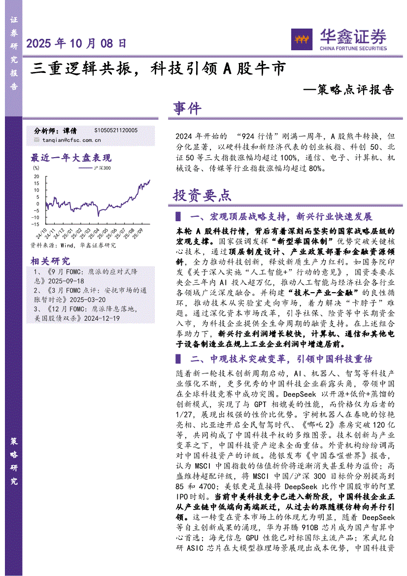 研报:华鑫证券-策略点评报告:三重逻辑共振,科技引领A股牛市-251008
