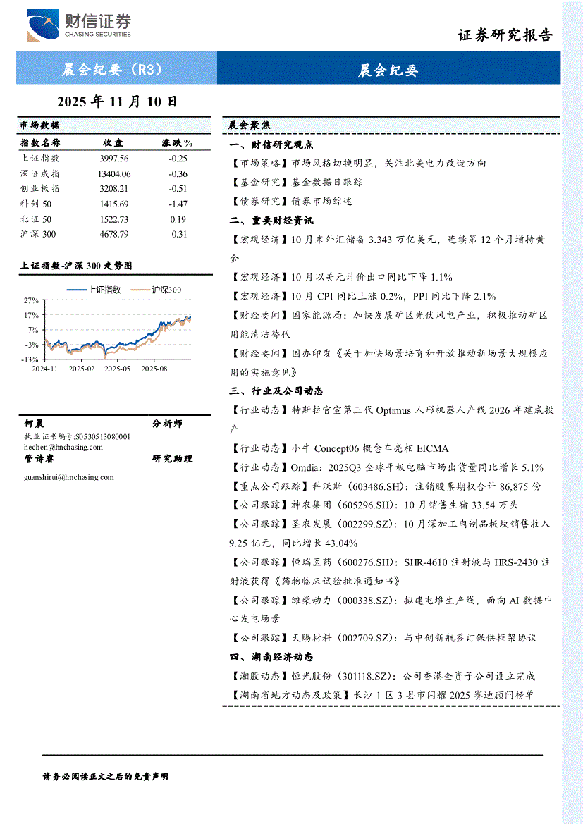 研报:财信证券-晨会纪要-251110