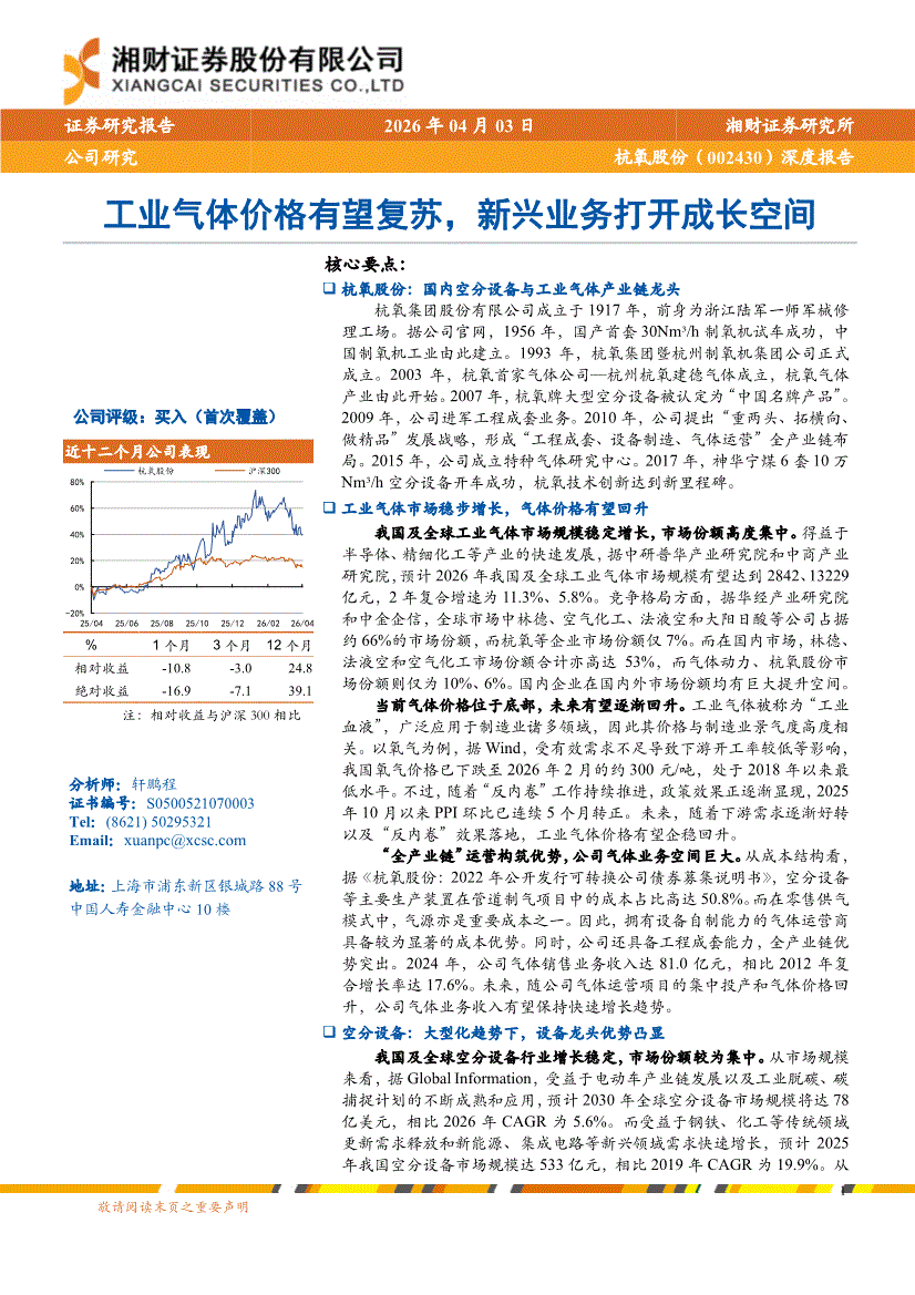 杭氧股份研报:湘财证券-杭氧股份-002430-深度报告:工业气体价格有望复苏,新兴业务打开成长空间-260403