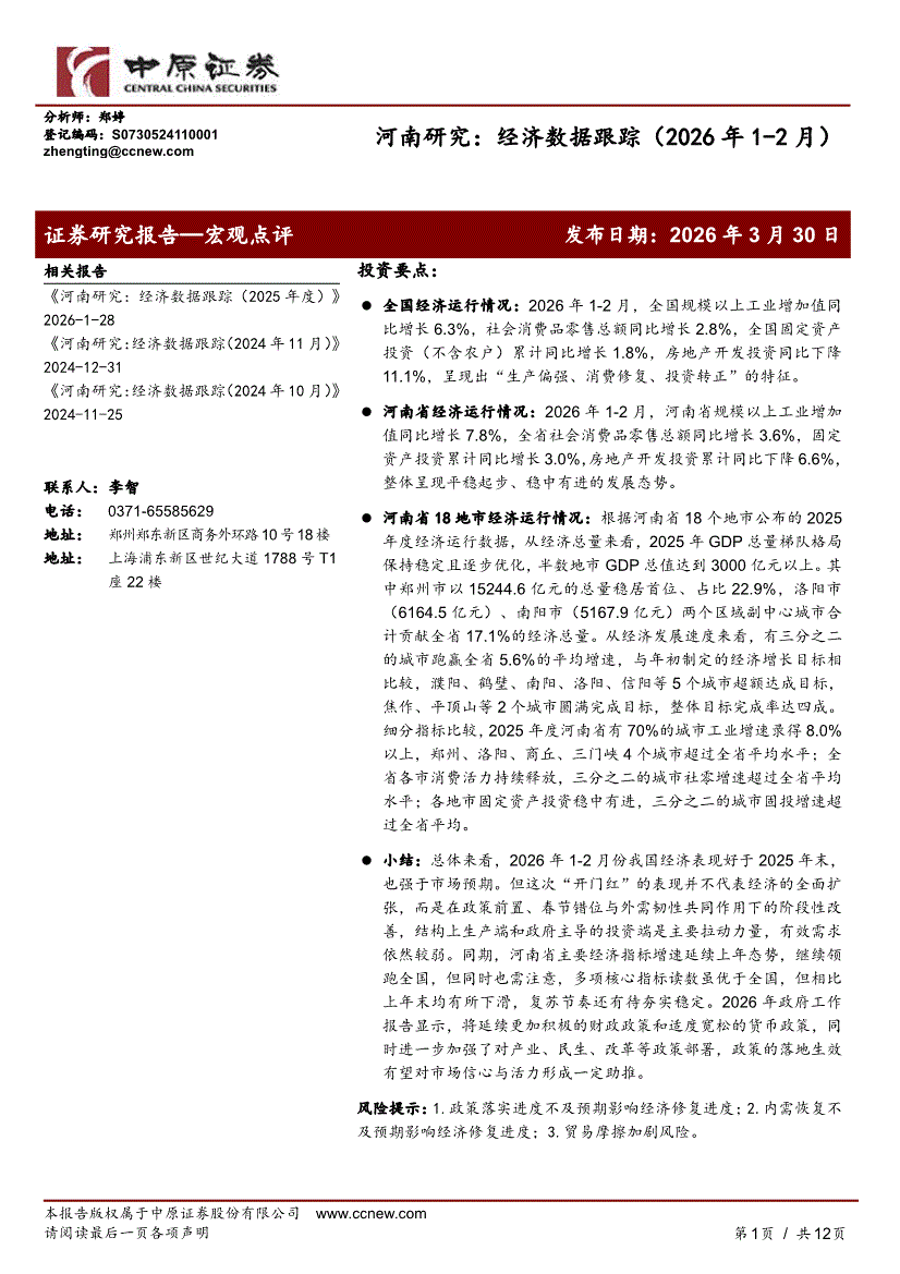 研报:中原证券-河南研究:经济数据跟踪(2026年1~2月)-260330