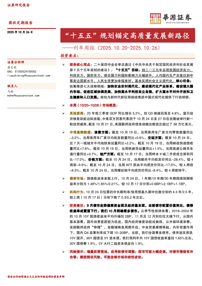 研报:华源证券-利率周报:“十五五”规划锚定高质量发展新路径-251026