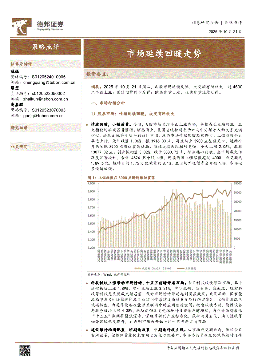研报:德邦证券-策略点评:市场延续回暖走势-251021