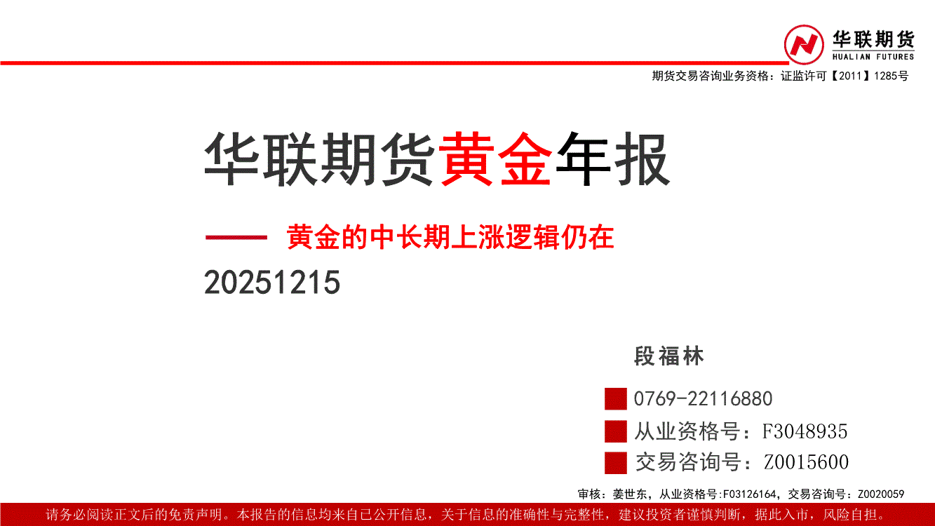 研报:华联期货-黄金年报:黄金的中长期上涨逻辑仍在-251215