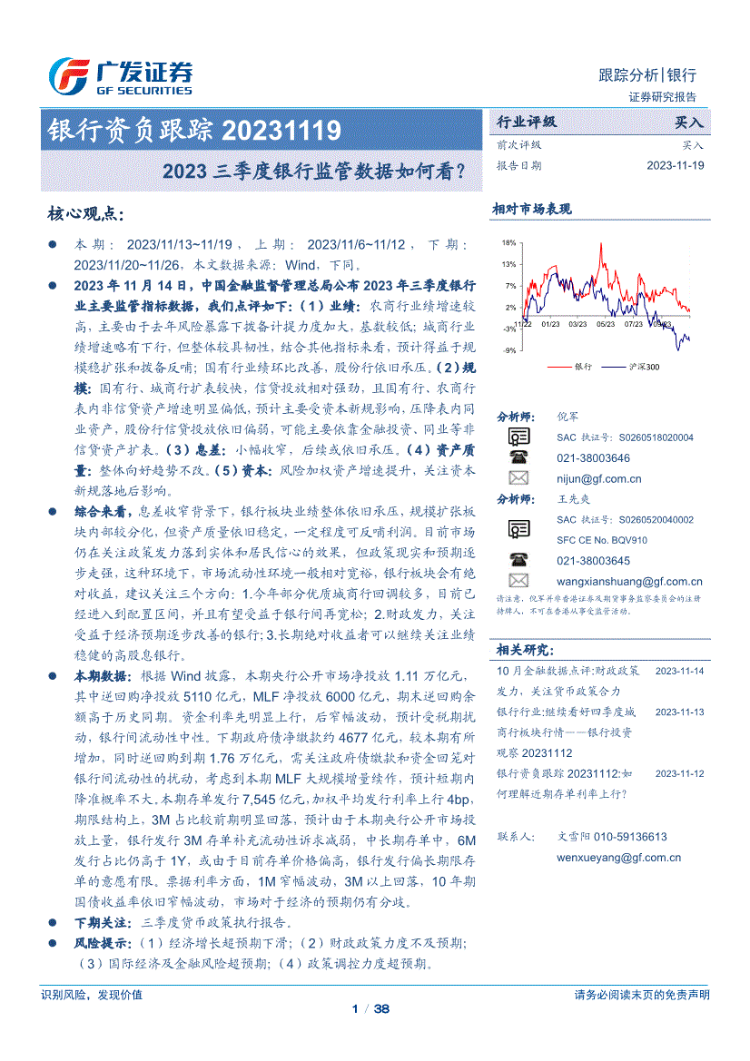 银行业研报:广发证券-银行业银行资负跟踪:2023三季度银行监管数据如何看?-231119