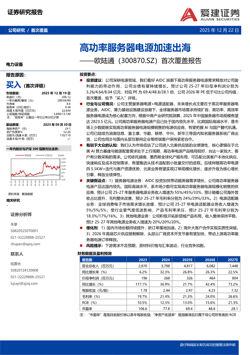 欧陆通研报:爱建证券-欧陆通-300870-首次覆盖报告:高功率服务器电源加速出海-251222