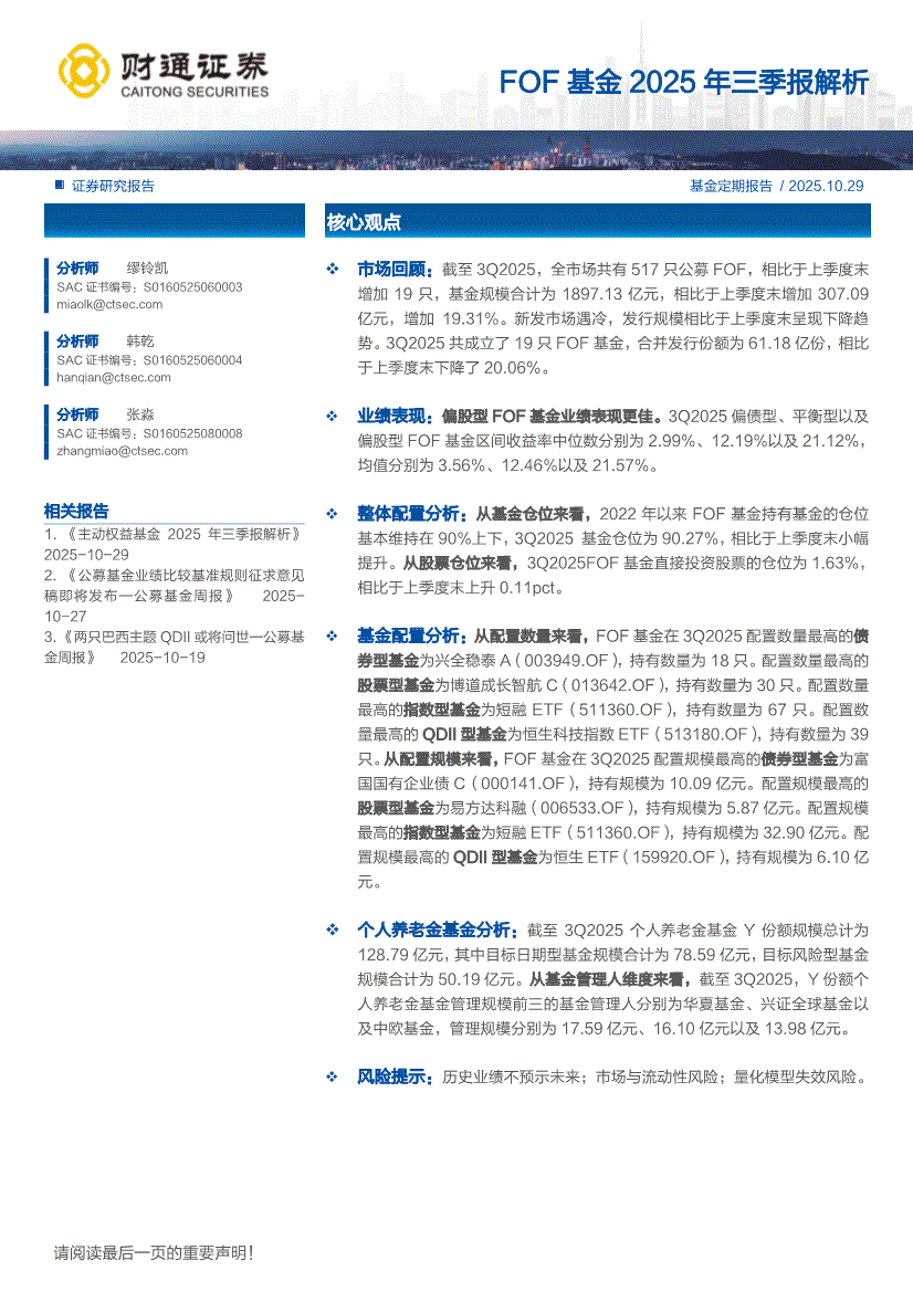 研报:财通证券-FOF基金2025年三季报解析-251029