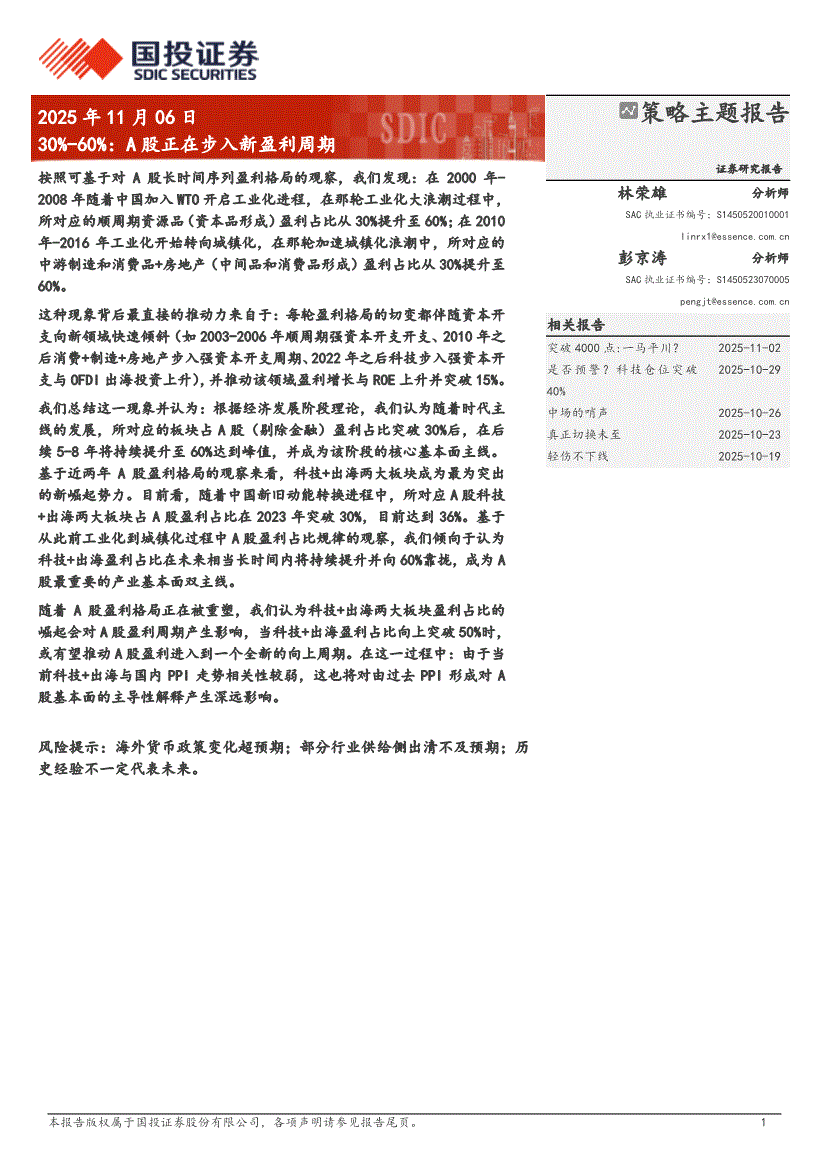 研报:国投证券-30%~60%:A股正在步入新盈利周期-251105