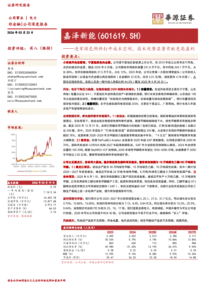 嘉泽新能研报:华源证券-嘉泽新能-601619-进军绿色燃料打开成长空间,技术优势显著贡献更高盈利-260323