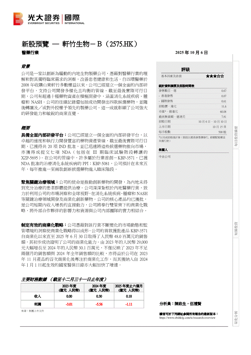 光大证券(国际)-新股预览:轩竹生物~B(2575.HK)-251006