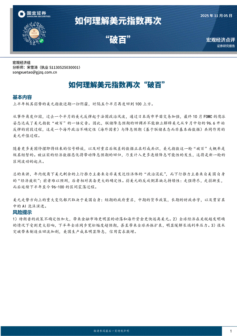 研报:国金证券-如何理解美元指数再次“破百”-251105