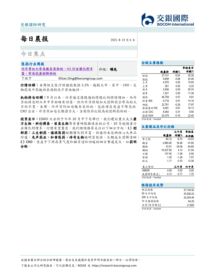 交银国际-医药行业周报:内外资加大布局服务类标的,4Q行业催化剂丰富,布局优质创新标的-251003