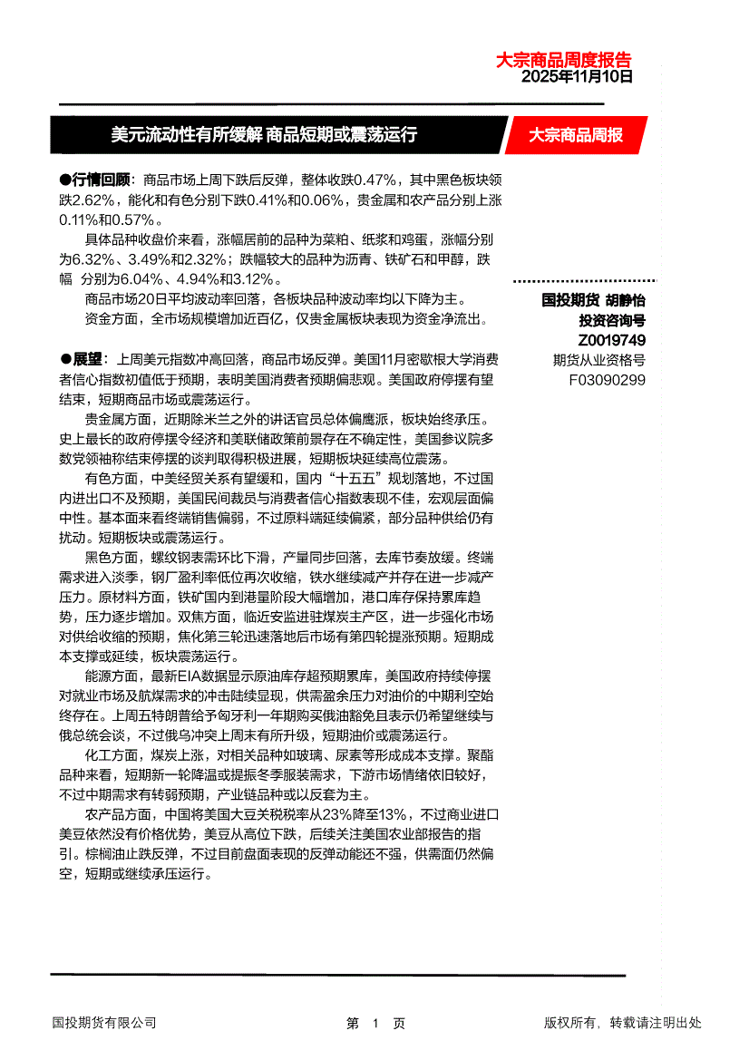 研报:国投期货-大宗商品周报:美元流动性有所缓解,商品短期或震荡运行-251110