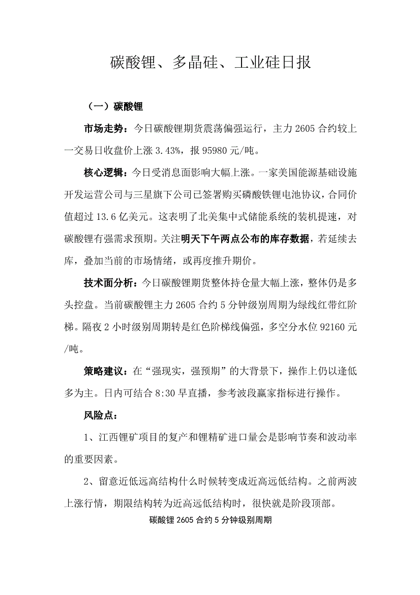 天富期货-碳酸锂、多晶硅、工业硅日报-251210