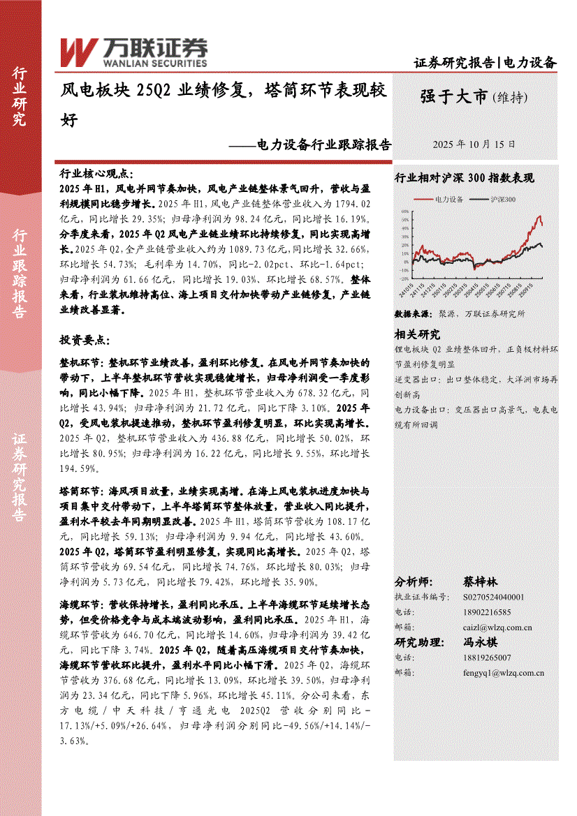 电力设备行业研报:万联证券-电力设备行业跟踪报告:风电板块25Q2业绩修复,塔筒环节表现较好-251015