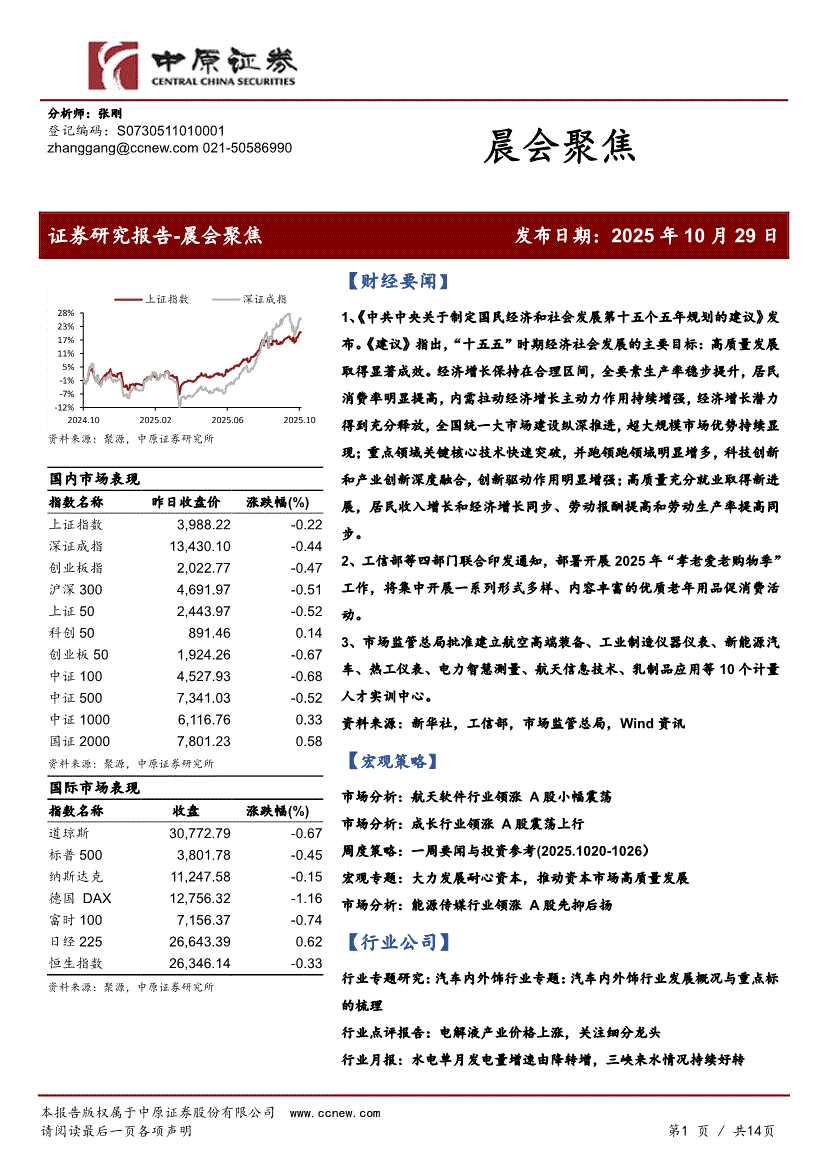 研报:中原证券-晨会聚焦-251029