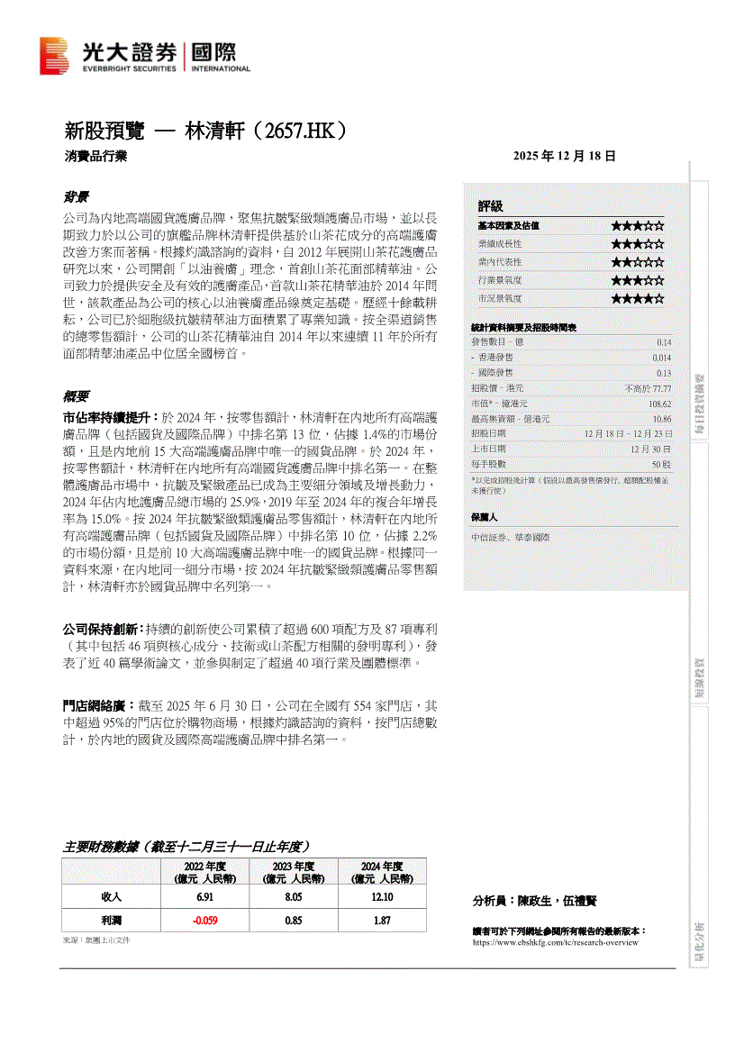 研报:光大证券(国际)-新股预览:林清軒(2657.HK)-251218