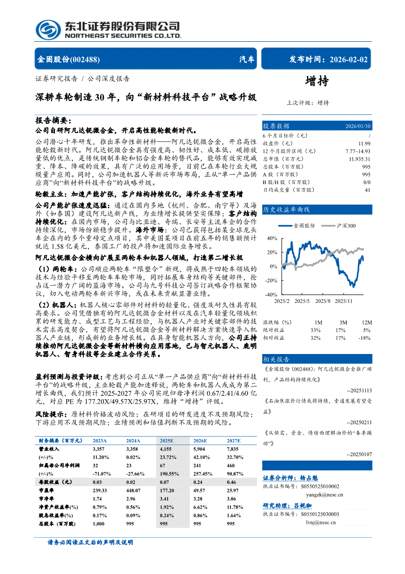 金固股份研报:东北证券-金固股份-002488-深耕车轮制造30年,向“新材料科技平台”战略升级-260202