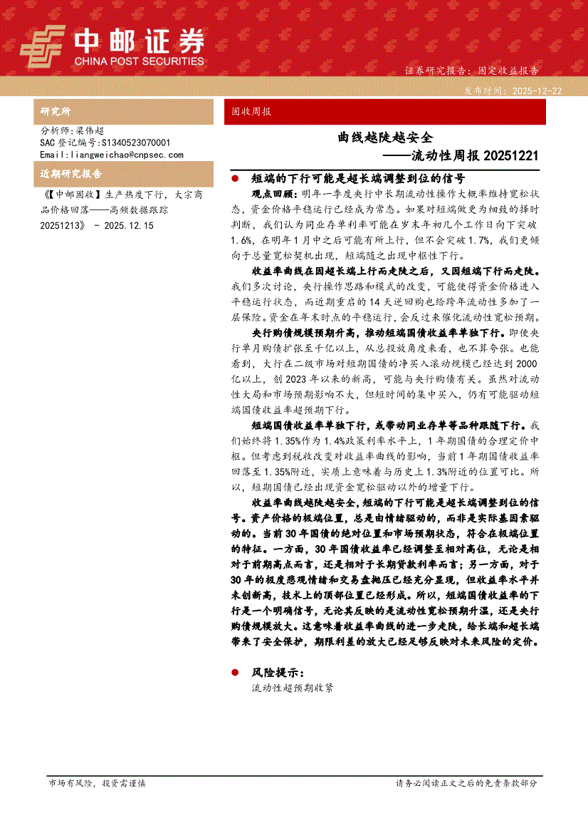 研报:中邮证券-流动性周报:曲线越陡越安全-251221