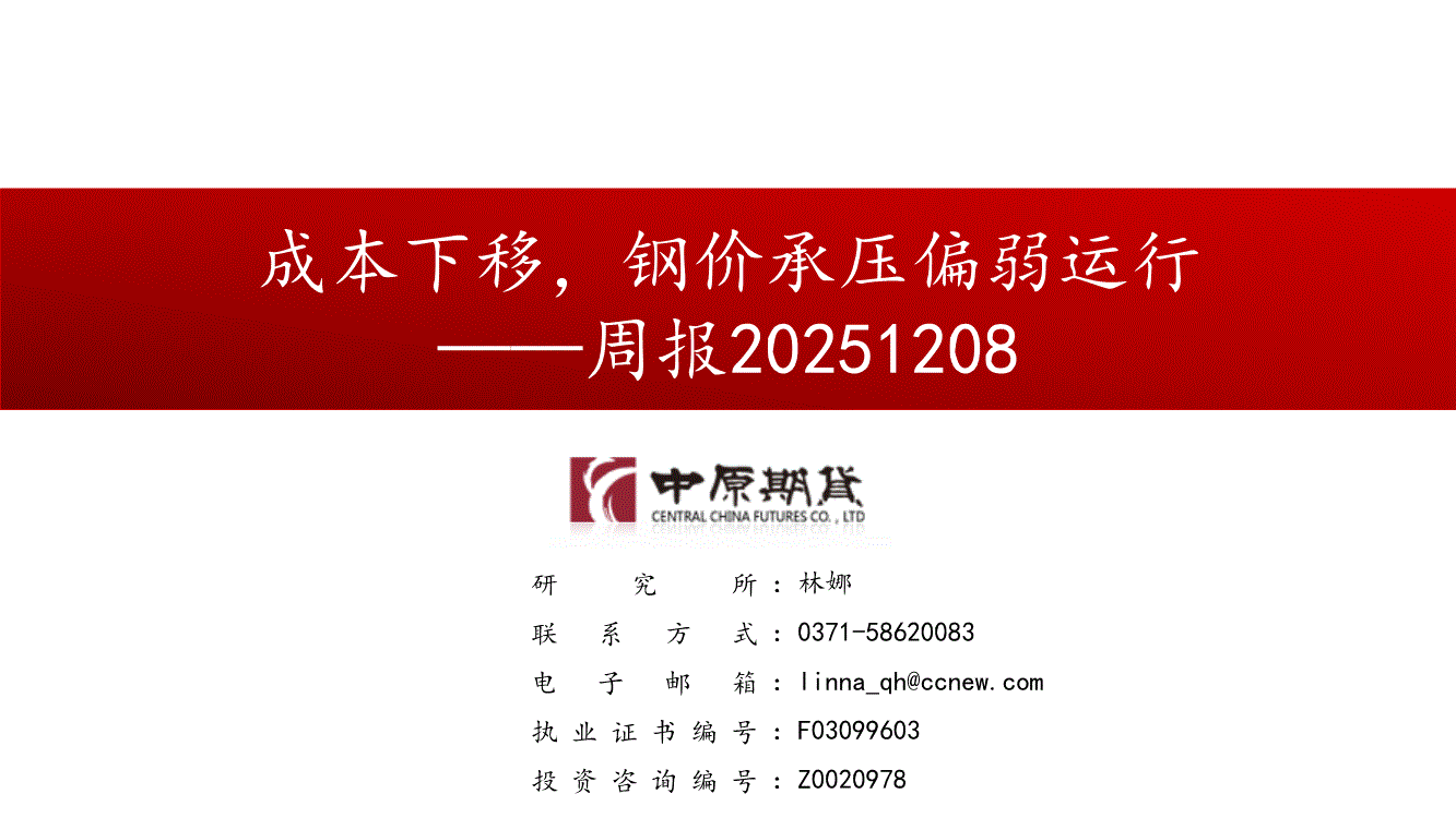 研报:中原期货-周报:成本下移,钢价承压偏弱运行-251208