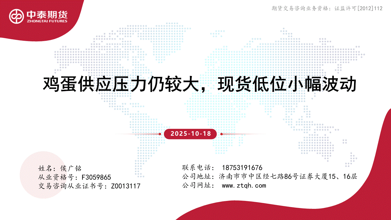 研报:中泰期货-鸡蛋供应压力仍较大,现货低位小幅波动-251018