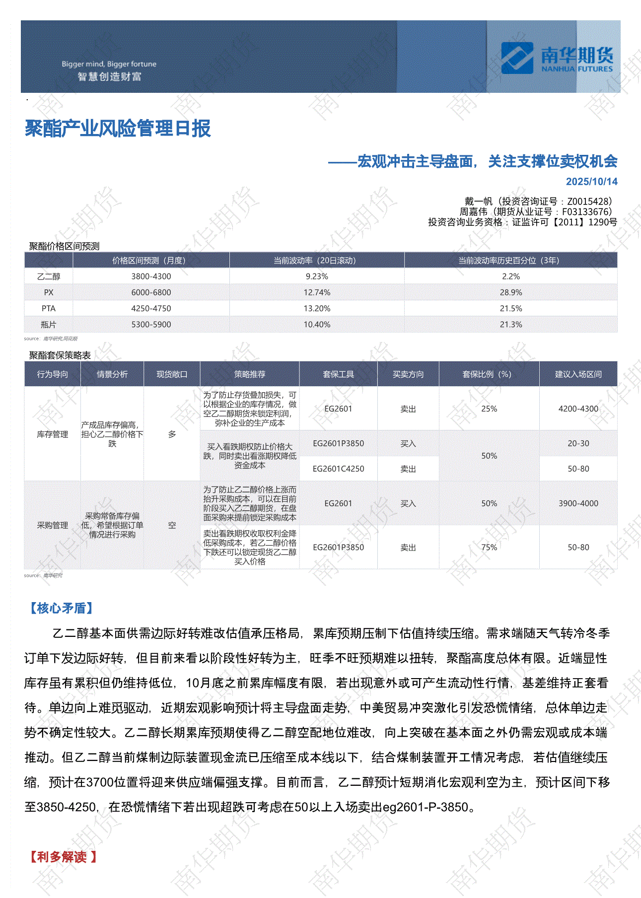 研报:南华期货-聚酯产业风险管理日报:宏观冲击主导盘面,关注支撑位卖权机会-251014