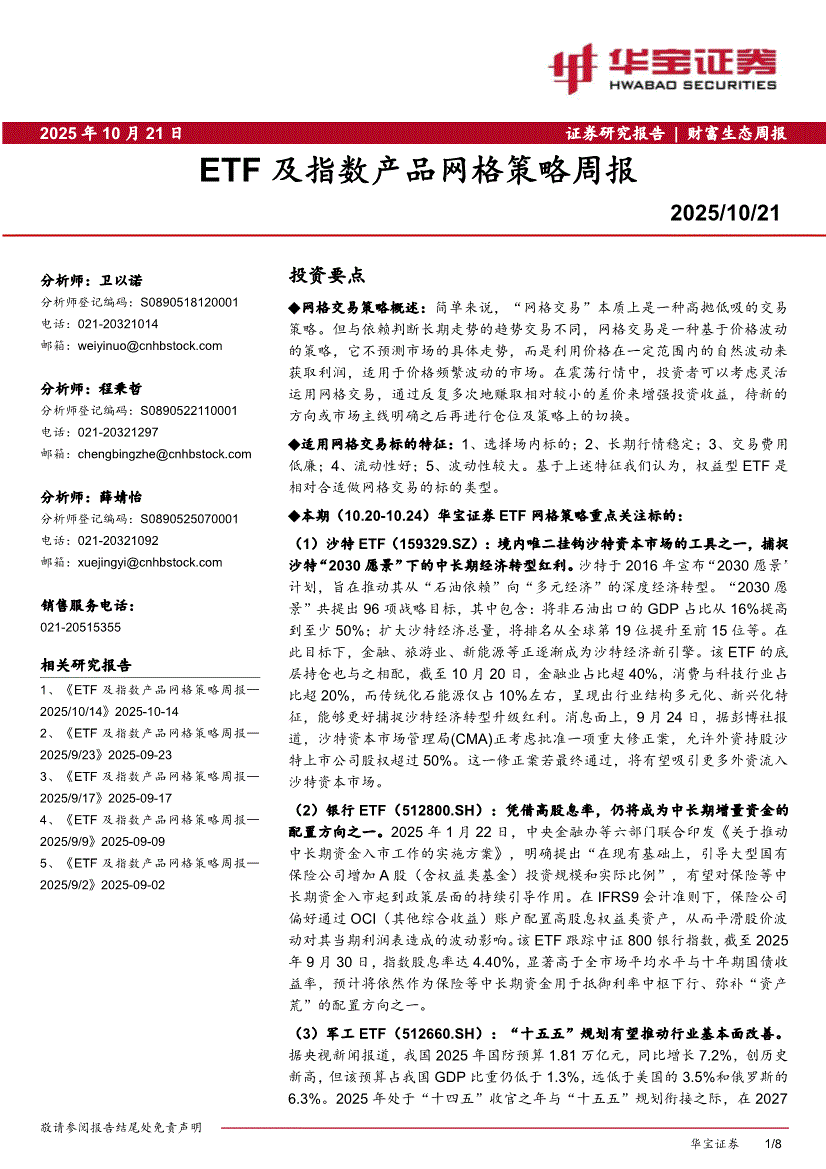 研报:华宝证券-ETF及指数产品网格策略周报-251021