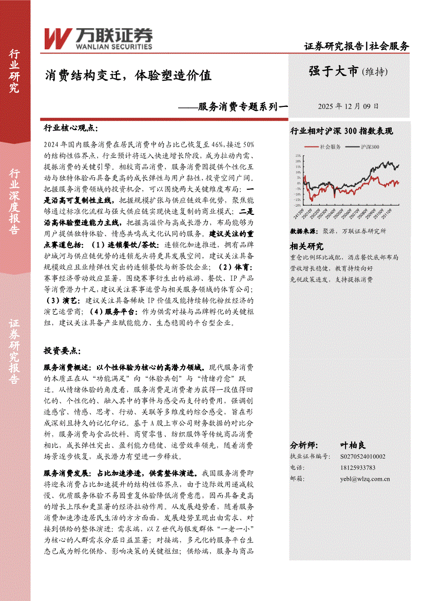 社会服务行业研报:万联证券-社会服务行业服务消费专题系列一:消费结构变迁,体验塑造价值-251209