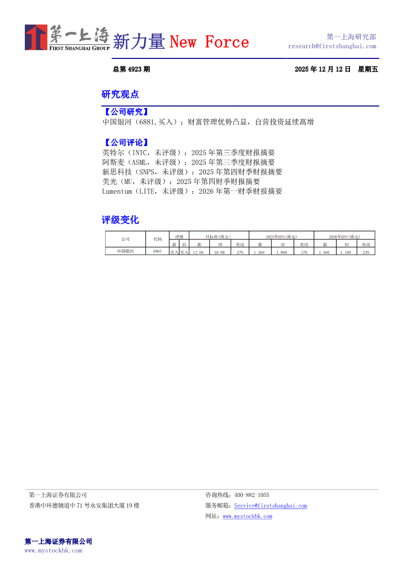 新华汇富-滙富快訊:香港及中国市场日报-251212