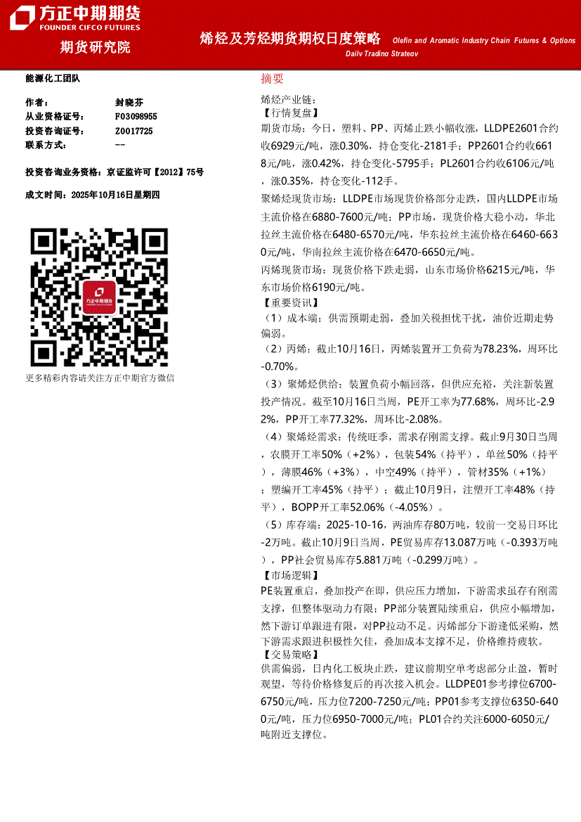 研报:方正中期期货-烯烃及芳烃期货期权日度策略-251016